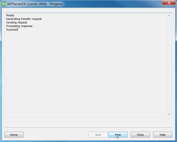 Important: The transfer request file must be generated from the License Utility on the original host machine. An internet connection is required to complete the license transfer process. If the host machine that the active license is being transferred from does not have internet access, users must copy the transfer request file to a computer that does in order to log in to the My Kepware portal and upload the transfer request file.