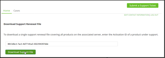 - Enter the License Activation ID into the text field and select Download Support Renewal File.