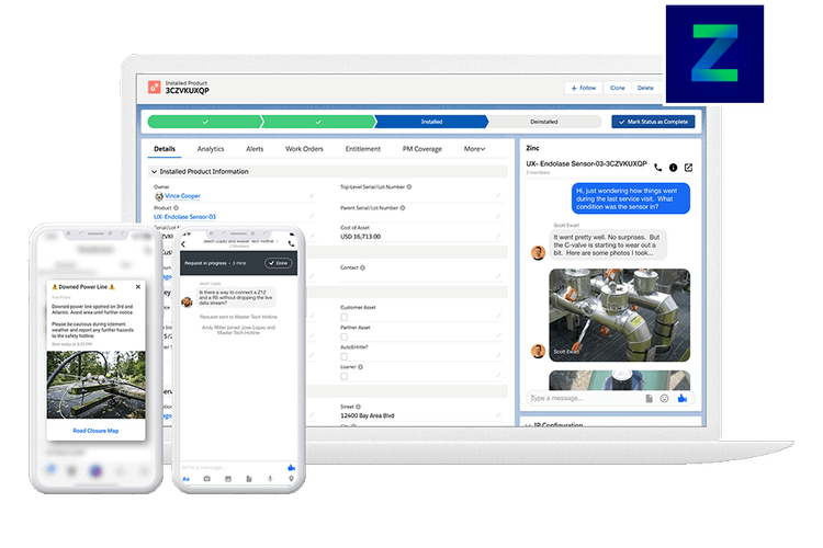 "Zinc has helped our Field Service teams operationally in a variety of important ways: We can resolve critical issues faster, office-based members of the service department can instantly communicate with the field thanks to desktop apps, and our service teams can quickly communicate and collaborate without having to switch between several apps."