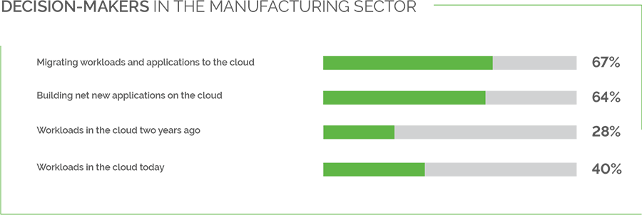 Cloud computing plays a crucial role in digital industrial transformation efforts in all industries including manufacturing. According to a Forrester report, 67% of decision-makers report that their organizations are migrating workloads and applications to the cloud and 64% are building net new applications on the cloud. Decision-makers estimate that two years ago, only 28% of manufacturing workloads were in the cloud, while today, that number has grown to nearly 40%, and business leaders estimate growth to 48% within two years.
