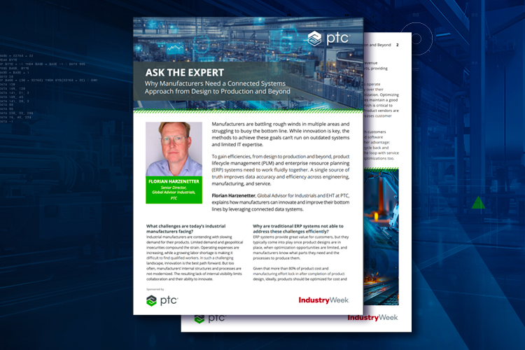 Navigating manufacturing challenges like slowing demand, rising costs, and labor shortages is no easy feat. To gain expert insights, IndustryWeek interviewed Florian Harzenetter, Global Advisor for Industrials at PTC, where he explains how interconnected systems link product design, manufacturing, and service to drive efficiency and innovation.