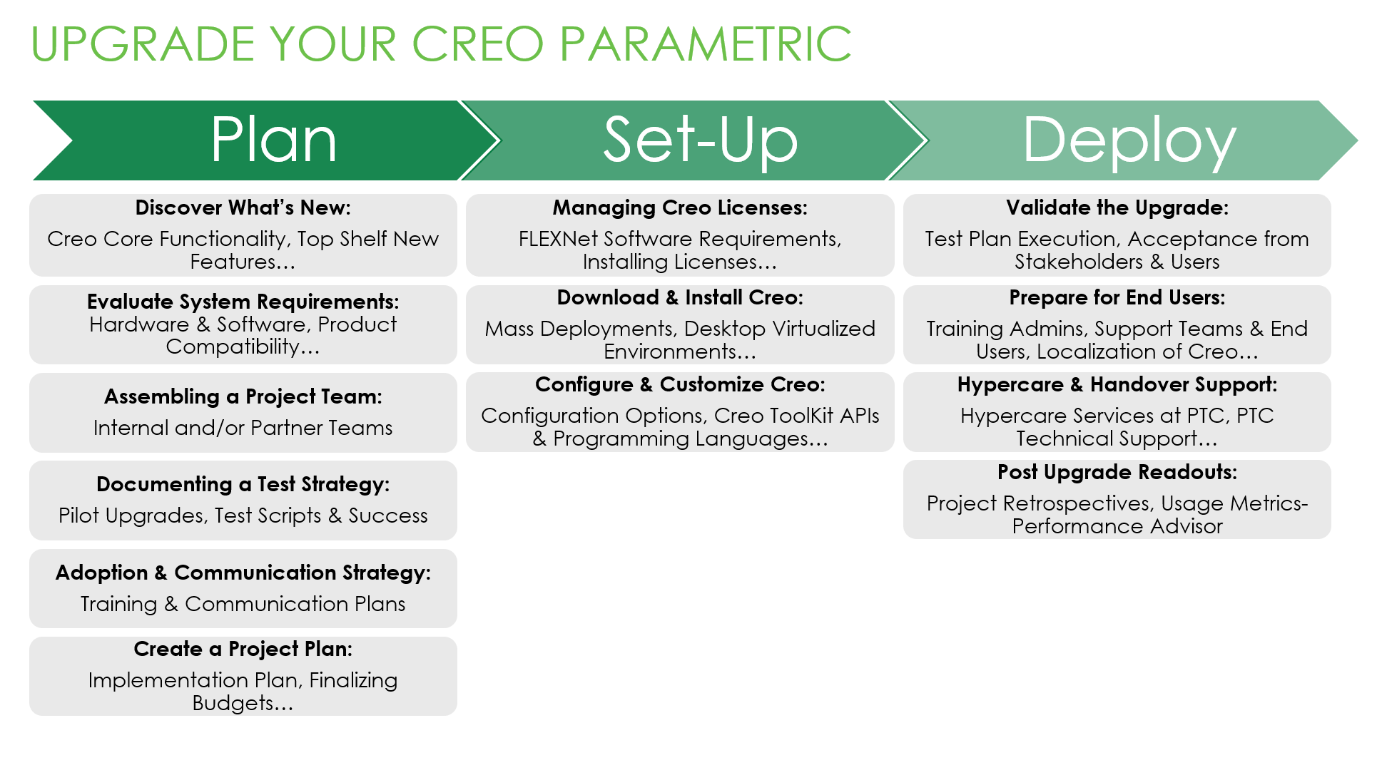Before you begin, we recommend you review Evaluate Requirements to Upgrade, which details hardware and software system requirements, PTC Product Compatibility, and configurations and customizations.