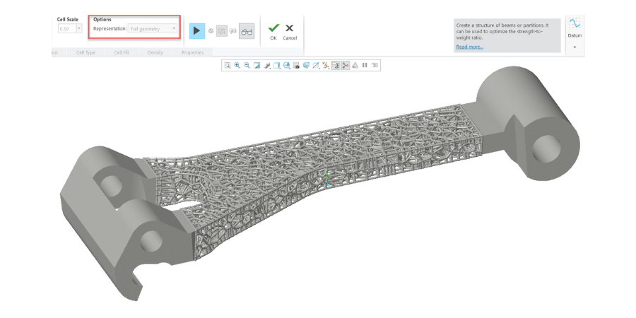 Avec les nouvelles capacités pour la fabrication additive additives, vous pouvez maintenant créer des structures en treillis variables en fonction des résultats de la simulation. De plus, les améliorations apportées pour l’optimisation de la direction de construction et la configuration de la cellule d’impression permettent d'augmenter la vitesse de production et la qualité de la fabrication.