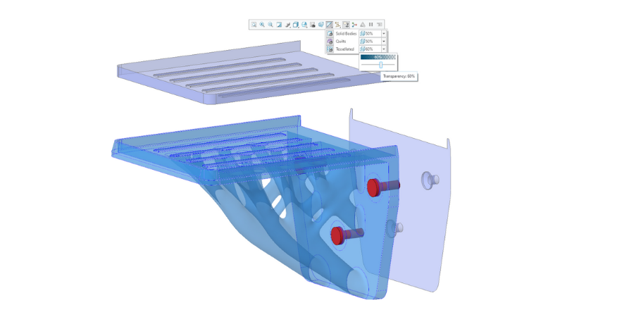 Image : Le contrôle de la transparence dans la barre d'outils graphique ajuste la transparence des corps, des surfaces composées et de la géométrie tessellée.