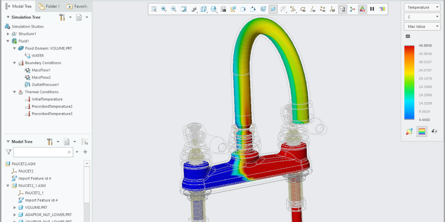 • Les améliorations de Creo Simulation Live permettant l'analyse des fluides en régime permanent, et la redéfinition des sondes existantes