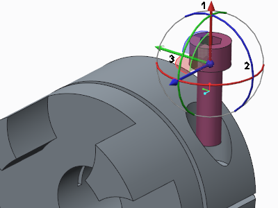• 使用拖动器。拖动其中心点以自由拖动元件。拖动箭头以沿轴平移元件。拖动旋转弧以旋转元件。拖动平面以移动平面上的元件。拖动器连接到元件的默认坐标系。仅适用于选定约束的方向箭头、弧和平面可用。