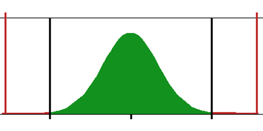 として扱います(上の正規分布曲線の黒い縦線の範囲)。