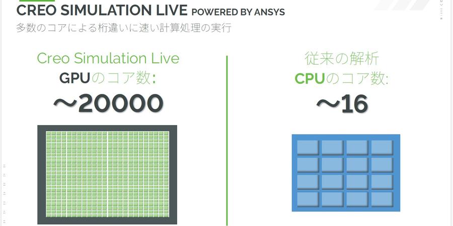 次に、なぜリアルタイムシミュレーションと呼ばれるような高速な解析が可能なのかについてですが、これには最近よく耳にする「GPUコンピューティング」が関係しています。この「Creo Simulation Live」は、GPUコンピューティングを取り入れているため、非常に速い解析を実現しています。