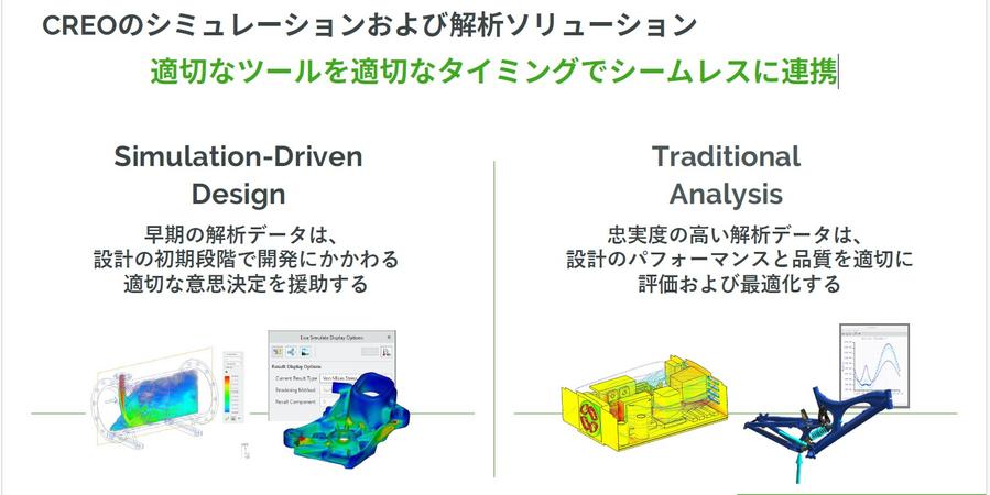 一方、「Traditional Analysis」は、従来からある構造解析、運動機構解析、流体解析などを指し、これらもCreo内で実施可能です。