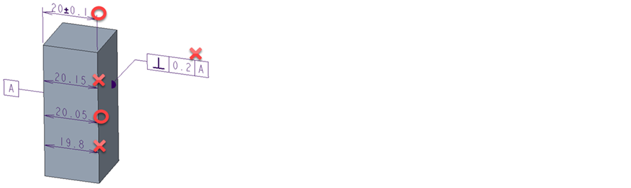 単独形体とは、その形状自体に指定するもので上記の表の「形体」が、それにあたります。関連形体は他との関係性を指定するもので「姿勢」「位置」「振れ」が、それにあたります。