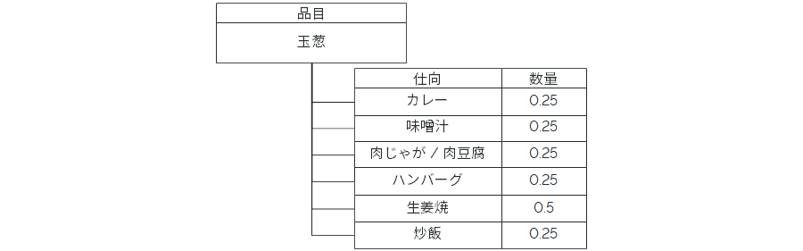 図4:玉葱の使い道を考える際に玉葱に対して逆展開を行うことで、玉葱の消費予測にも貢献