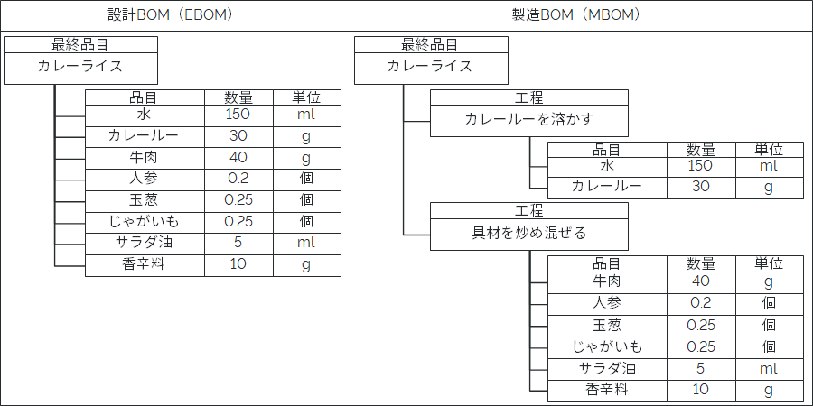 そこで今回は、カレーライスを例に挙げながら部品表 (BOM) の作り方を分かりやすく解説します。