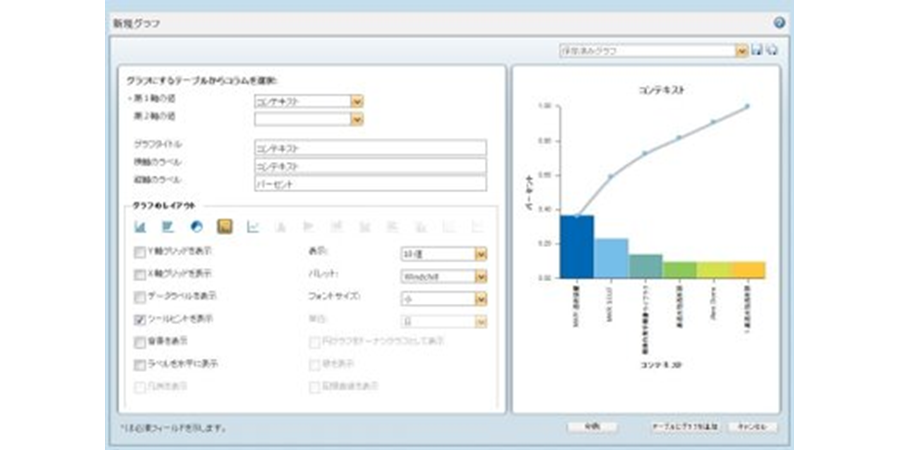 パレート図は数値が大きな順にプロットされた「棒グラフ」と、その累積構成比を表す「折れ線グラフ」を組み合わせた複合グラフです。