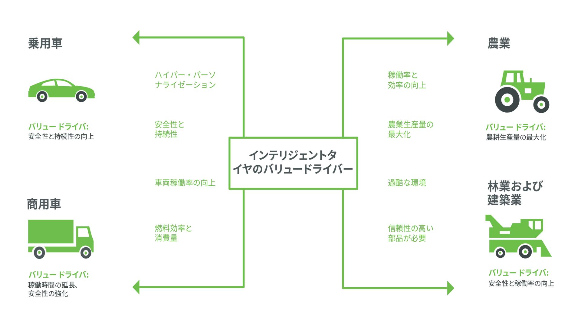 40 年ほど前、企業はリモートモニタリングとサポートのために重要な資本設備を活用し始めました。当初はモデムでしたが徐々にインターネットに移行し、コストとパフォーマンスの良さからさまざまなユースケースが実現しました。このような取り組みが最終的に製品設計を変え、OEM はソフトウェア、センサー、エラーコード、内部診断を実装し、リモート(および現場)でのトラブルシューティングを支援できるようになりました。これは「スマート」や「インテリジェンス」と呼ばれます。ドライバーに空気漏れを警告する独創的な Bosch 社のベルから、RFID1、基本的なタイヤ空気圧監視システム (TPMS) に至るまで、スマートタイヤのコンセプトは、用語の違いこそあれ、大きく進歩してきました。