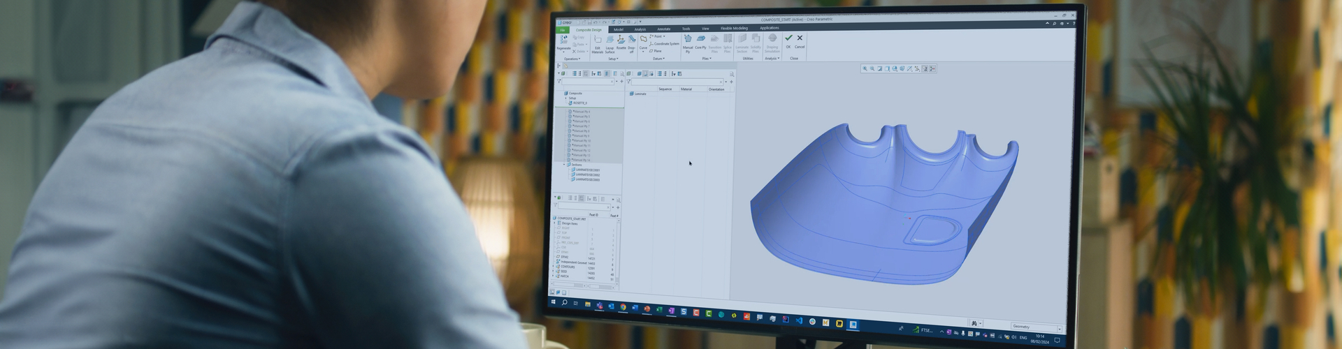 Creo Composite Design and Manufacturing (CDM) は、プライの定義と詳細な指示の作成を簡素化します。Creo で、コア、個々のフラットプライレイヤ、トランジション、ドレーピングとスプライシング機能を簡単に生成できます。