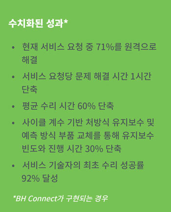 ThingWorx를 기반으로 구축된 BH Connect 솔루션: 평균 수리 시간 60% 단축